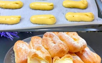 Izrađeni od nježnog i pahuljastog choux tijesta, ovi bezvremenski ekleri prepuni su raskošne kreme od vanilije i mogu se ukrasiti posipom šećera u prahu, ako to želite. Očaravajuće uživanje prikladno …